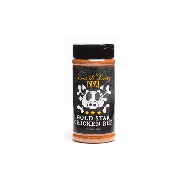 Loot N Booty 13 oz. Gold Star Chicken BBQ Rub. It adds another element of flavor to all of your poultry dishes. It comes in a shaker can.
