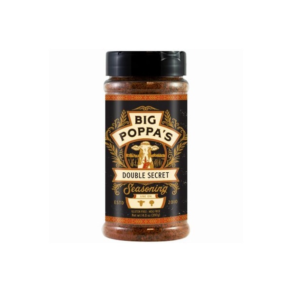 14OZ Big Poppa Double Secret Steak Rub. This BBQ rub has been specially formulated to bring out the best flavors in any cut of steak tri-tip ribeye filet mignon etc. and it also brings out the best flavor in just about anything beef. Its even great on baked potatoes and other sides.