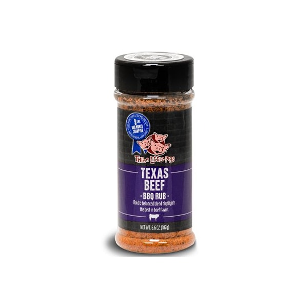 3 Little Pigs 6.6 oz. Texas Beef BBQ Rub. This bold and balanced blend highlights the best in beef flavor. It comes in a shaker can.