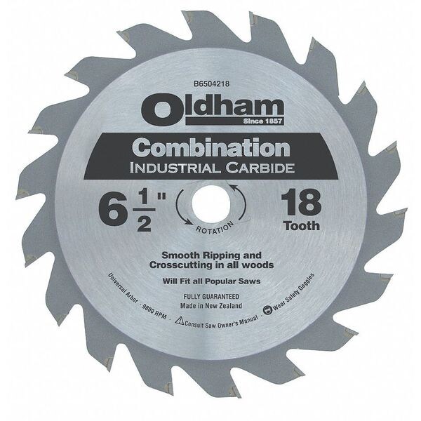 Circular Saw Blade, Blade Dia. 6 1/2 in, Diamond Knockout No, Number of Teeth 18, Tip Material Carbide, Hook Angle 20.0 Degrees , Tooth Grind ATB, Blade Type Combination, Plate Thickness 0.039 in, Application For Wood Cutting