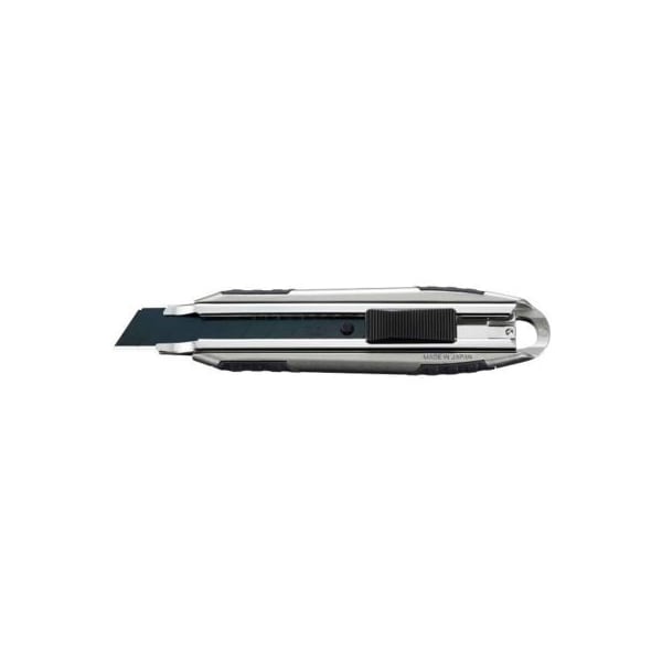 Featuring a sleek die-cast aluminum handle with integrated wraparound anti-slip grip. This metal knife is designed for the challenges of even the toughest jobsites while still looking sharp and stylish. The oversized, ergonomic handle contours to the hand, making this knife your new go-to cutting tool.the rugged stainless steel blade channel extends the full length of the handle to support heavy-duty cutting. The auto-lock blade slider allows for quick and easy one-touch blade extension into multiple cutting depths. Tactile and audible clicks at each stop assure correct blade placement. The blade locks into pre-set detents for a secure hold during pushing and pulling movements for dependable cutting. features: sturdy die-cast aluminum handle wraparound anti-slip rubber grip stainless steel blade channel convenient lanyard hole helps avoid loss no tool blade change preloaded with a 18mm lbb heavy-duty ultra-sharp black snap-off blade