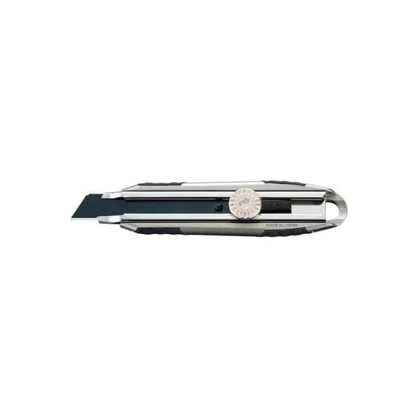 This metal knife is designed for the challenges of even the toughest jobsites while still looking sharp and stylish. The over-sized, ergonomic handle contours to the hand, making this knife your new go-to cutting tool. features: sturdy die-cast aluminum handle wraparound anti-slip rubber grip stainless steel blade channel convenient lanyard hole helps avoid loss no tool blade change preloaded with a 18mm lbb heavy-duty ultra-sharp black snap-off blade