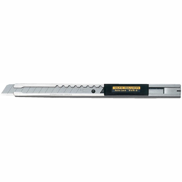 Stainless Steel Auto-Lock Utility Knife. Perfect for use in moist environments where rust is a concern.This snap-off cutter includes a slide lock, built-in pocket clip/blade snapper and slim design making it a popular choice for industrial professionals.Right or left hand use. Ideal for window tinting and paper hanging. Includes ABS Blade. Fits 9mm AB, ABB, ABS, A-SOL Blades. Applications include paint, window film and packaging. Cuts tape, shrink wrap, wallpaper, film, cardboard, caulking and more. Auto-lock mechanism. Stainless steel channel and handle. No tool blade change. Pocket clip and blade snapper. Pre-loaded with an ABS stainless steel snap-off blade. MUST BE 18 YEARS OR OLDER TO PURCHASE THIS PRODUCT.