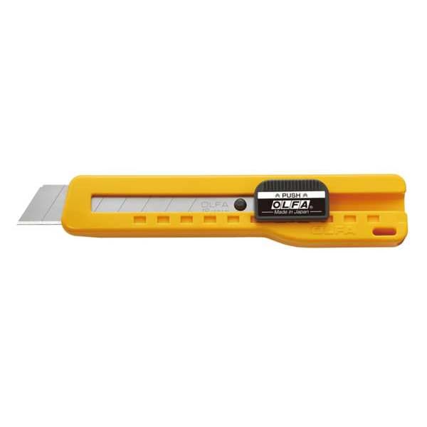 This OLFA SL-1 Utility Knife is the perfect tool for cutting carpeting, drywall and wallcovering. With a heavy duty handle made of ABS high impact plastic, this utility knife has a one-touch slide lock cutter. The blade is made of high carbon steel and it has an overall thickness of 3/4 in. Its yellow handle color ensures you will not lose sight of your knife when working on your project. It measures 5 3/4 in long and 1 1/4 in wide. If you are looking for a sharp utility knife that is durable enough to get the job done, this OLFA SL-1 Utility Knife is the right choice for you.