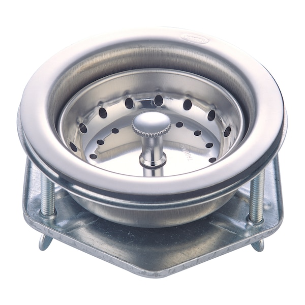 This OLYMPIA FAUCETS Stainless Steel Easy Connect Basket Strainer has a polished chrome finish and weighs 0.8 lbs. It has an overall width of 4.44" and a connection size of 3.5" - 4".