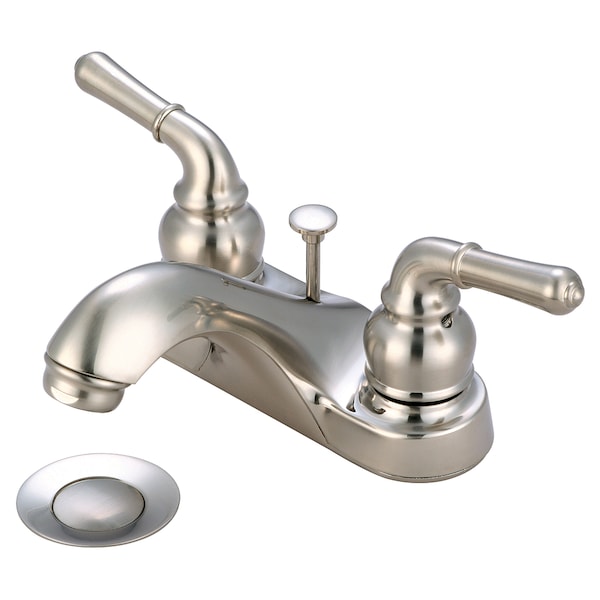 Two Handle Bathroom Faucet, NPSM, Centerset, Brushed Nickel, Handle Style: Lever