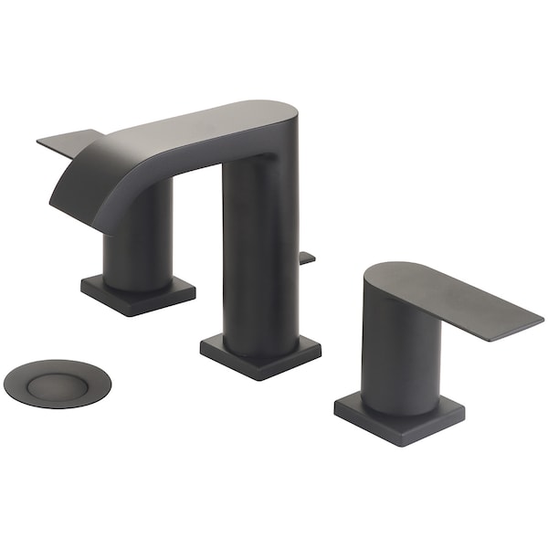 Two Handle Lavatory Widespread Faucet, Compression Hose, Black, Spout Reach: 4.50"
