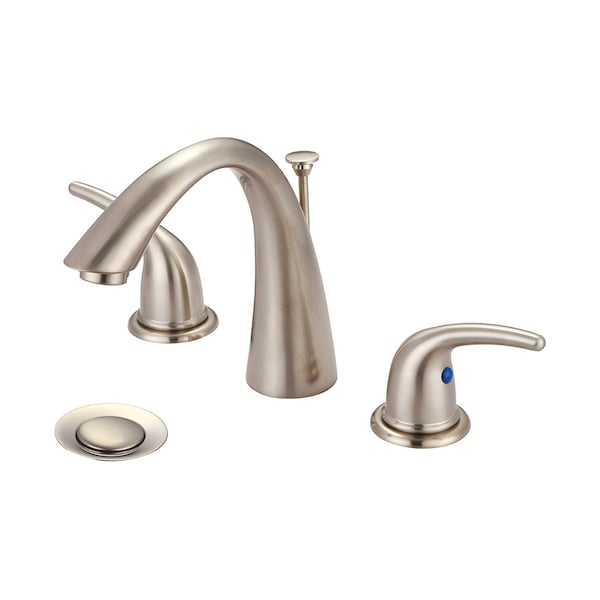 Two Handle Widespread Bathroom Faucet, Compression Hose, Nickel, Flow Rate (GPM): 1.2