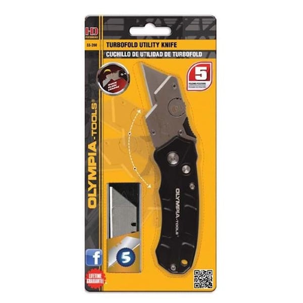 Olympia Tools 33-200 4 in. Turbofold Utility Knife; Black (Discontinued)