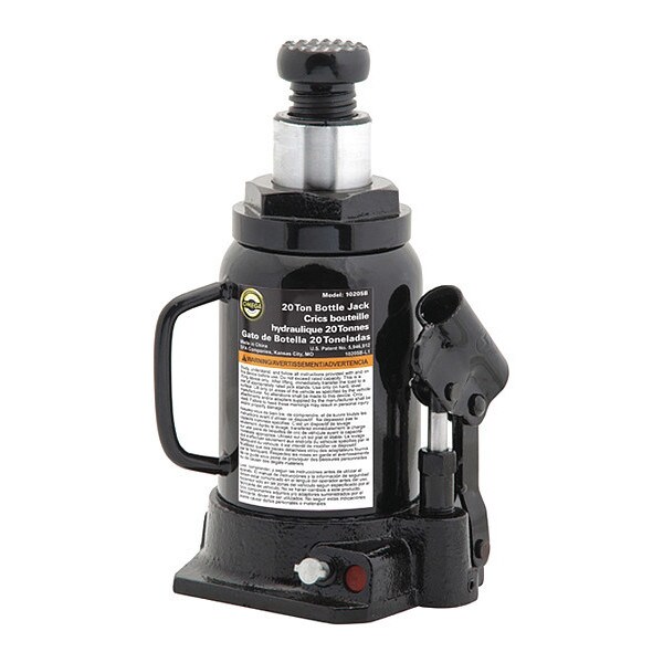 Side Pump Bottle Jack,20 tons, Load Capacity 20 ton, Body Material Steel, Lifting Actuator Manual Handle, Maximum Lift Height 18 1/2 in, Power Source Mechanical, Minimum Height 9 3/4 in, Standards ASME PASE 2014, Base Length 6 3/8 in, Base Width 6 in, Body Material Finish Polished, Extension Screw Length 1 3/4 in