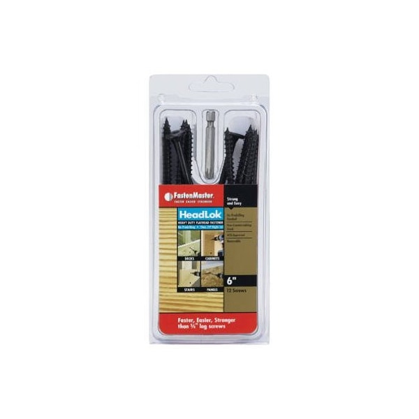 Fastenmaster, 12 Pack, 6, Headlok Screw, No PreDrilling Required, NonCountersinking Head, Removable, Patented Spider Drive System, Great For Installing Decks, Fences, Headers, Kitchen Cabinets Any Wood To Wood Connection, ACQ Approved