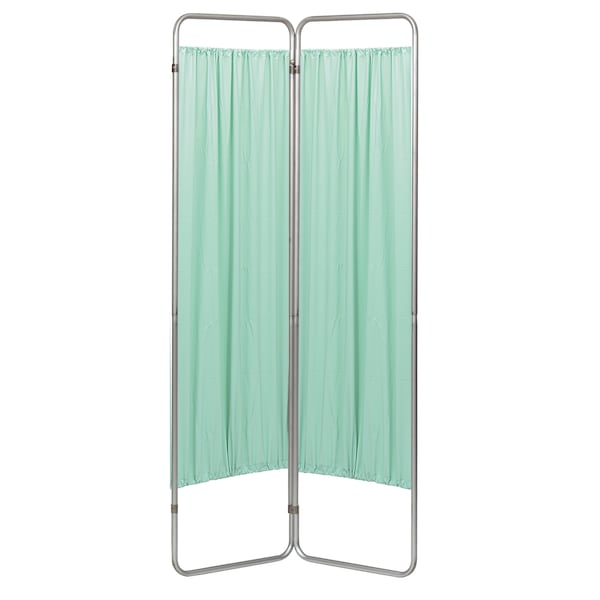 Omnimed Economy Privacy Screens are made of a durable, lightweight and easy to clean anodized aluminum. The 2 sections of the screen are attached to each other by a riveted hinge which allows the frame to smoothly fold and unfold as needed. Screen panels are secured to the frame by top and bottom snap in rods. The unit measures 68H x 27W and has a 5 year warranty. Two heavy gauge, flame resistant green vinyl panels are included with the screen frame. Panels are 52L x 27W and are machine washable.