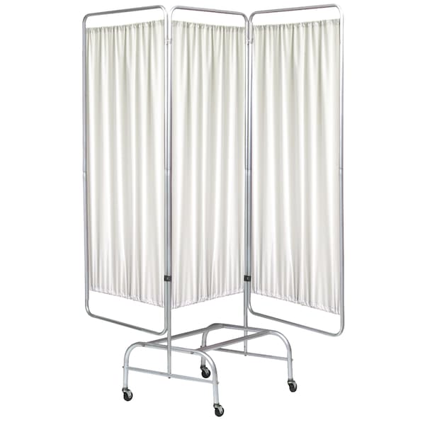Omnimed 3 Section Mobile King Screen Frames are made of a durable, lightweight and easy to clean anodized aluminum. These screens are secured to a heavy duty cross linked U shaped base on four 2 inch casters for easy mobility and increased stability. The 3 sections of the screen are attached to each other by a riveted hinge which allows the frame to smoothly fold and unfold as needed. King screens are the largest of the Omnimed privacy screens and are ideal for areas where maximum privacy is a must. The 3 section screen frame measures 71H x 96W and has a 5 year warranty.