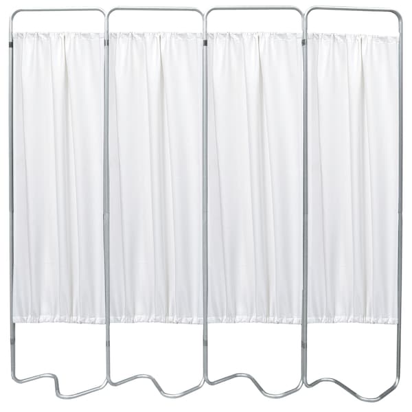 Omnimed Beamatic Privacy Screens are made of a durable, lightweight and easy to clean anodized aluminum. The 4 sections of the screen are attached to each other by a riveted hinge which allows the frame to smoothly fold and unfold as needed. Equipped with an S-shaped base, this screen has exceptional stability for use in busy environments. Screen panels are secured to the frame by top and bottom snap in rods. The unit measures 68H x 73W and has a 5 year warranty. Four heavy gauge, flame resistant white vinyl panels are included with the screen frame. Panels are 52L x 27W and are machine washable.