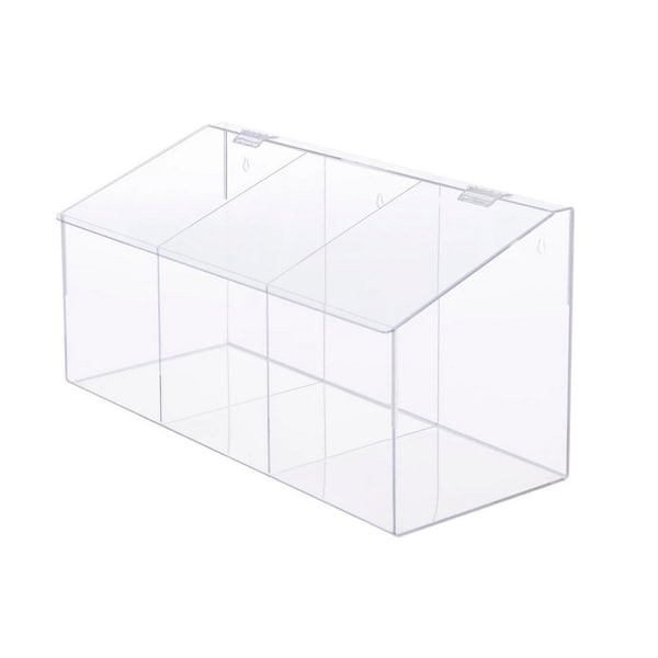 Organize your essential protective wear with ease using the Omnimed 3-Compartment Dispenser. Crafted from strong, clear acrylic, this dispenser offers excellent durability and visibility. It features three separate compartments, perfectly sized for storing hair covers, shoe covers, or arm protectors, gloves, eye glasses and much more! This versatile storage solution is a great addition to any medical or healthcare environment, including exam rooms and laboratories, to help keep supplies neatly arranged. Pre-drilled keyholes and hardware for attachment to your wall.