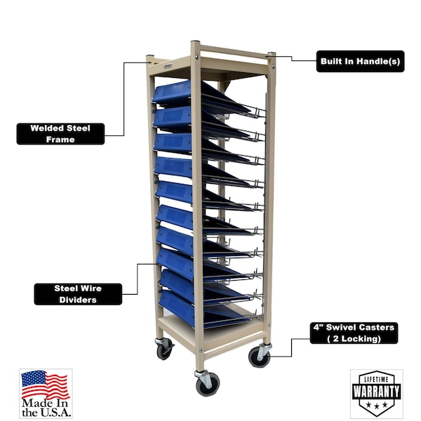 Omnicart's Welded Steel Frame Chart Organizers are designed for durability and efficiency, with coated wire organizers that keep charts stored at a slight angle for easy identification and quick retrieval. The versatile design accommodates both top- and side-opening chart binders in the same unit, maximizing storage capacity. Built to last, each rack is supported by a sturdy welded steel frame.