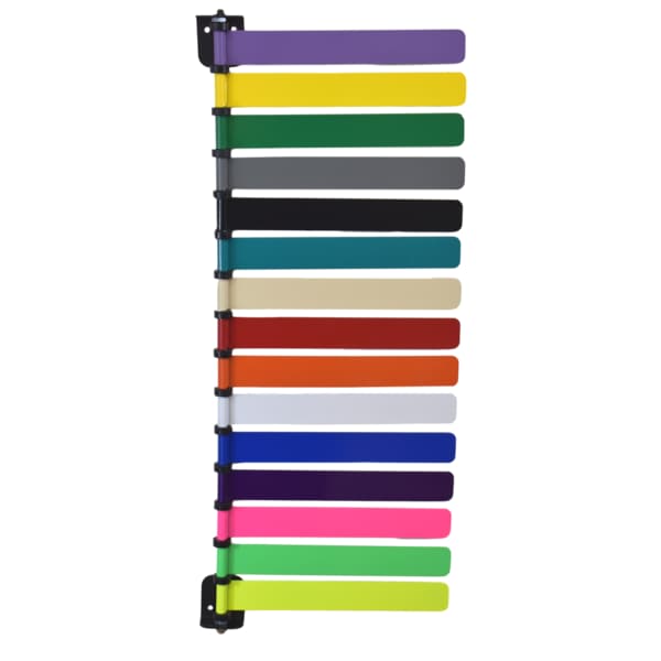 Room ID Flags with Custom Color Titles. Design your Room ID Flag System to adapt to your unique operation needs with different colors! This NEW signaling system is tailored to meet business needs and aesthetically pleasing. Color coding and printed directives on the individual flags provides an efficient means of conveying information to office staff. Configure your own color sequence in any order. Available colors: Green, Red, Grey, Yellow, Turquoise, Beige, White, Blue, Black, Orange, Lavender, Coral & our 4 new high visibility colors, Neon Green, Neon Yellow, Neon Yellow & Neon Purple.