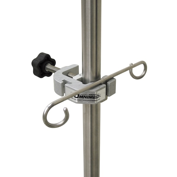 Dual slotted clamp design allows multiple accessories to attach to one IV clamp. Set screws are machined into each slot to secure the accessory. Omni clamp fits pole diameters up to 2".