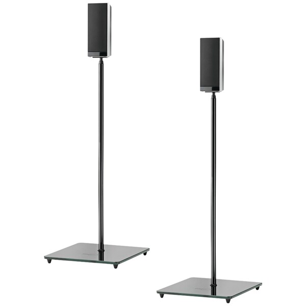 As a simple solution for small satellite speakers, Omnimount's EL0 combines height adjustability with an effortless design that will blend with any home environment. With clean lines and a glass base, this slim speaker stand is the modern solution for any room.