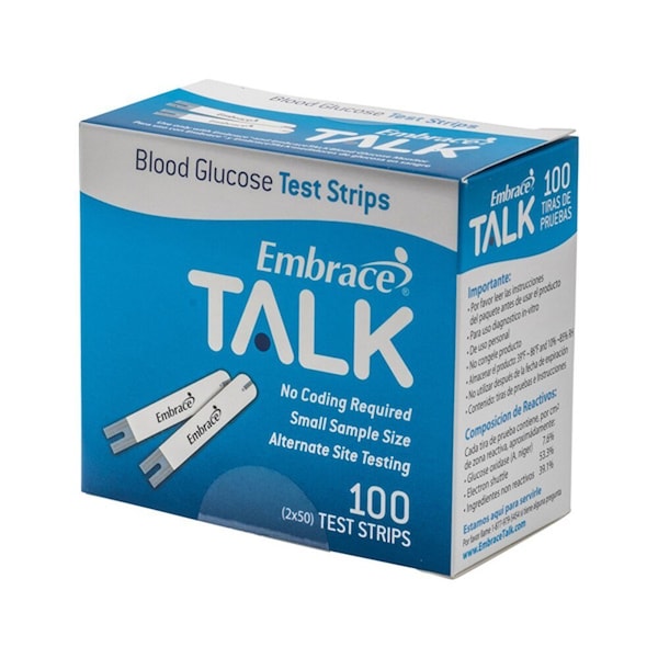 Embrace Talking, Blood Glucose Test Strips, 100PK