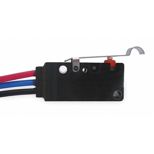 Sealed Snap Action Switch, Lever, Simulated Roller, AC Contact Rating - Snap Action Switch 3A @ 240V, Contact Form- Switches SPDT, Lever Actuator Length - Snap Action Switch 1.28 in, Height - Snap Action Switch 0.63 in, Width - Snap Action Switch 1.30 in, Depth - Snap Action Switch 0.41 in, Electrical Connection - Snap Action Switch Lead Wires, Mounting Dimension - Snap Action Switch 0.87 in Centers, Series D2VW