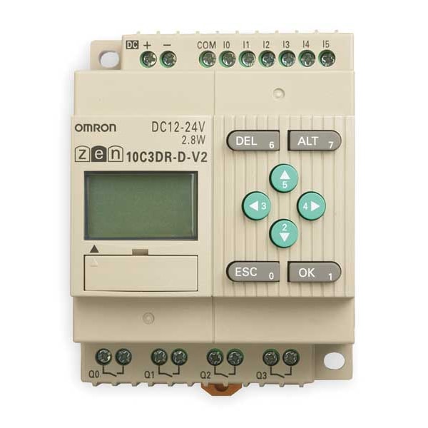 Programmable Relay, Input Voltage 12 to 24V AC/DC, Output Type (4) Relay, 30 A Amps, Number of Inputs 6, Number of Outputs 4, Counters 16, Timers 16, Yes Clock, LCD Display, Calendar, Depth 2.2 in, Height 3.54 in, Width 2.75 in