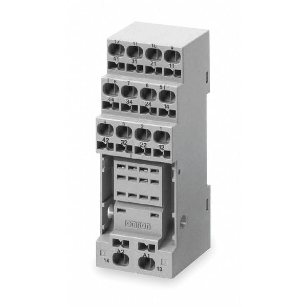 Relay Socket, Base Style Square, Contact Form 4PDT, Current Rating 10 A, Electrical Connection Screwless Clamp, Flat Pin Width 0.102 in, Number of Pins 14, Number of Terminals 4, Pin Shape Flat, Socket Type Elevator, Mounting Style DIN Rail, Color Tan, Compatible Relays MY Series, Compatible with Grainger Part Number 1YCU3, 2W931, 2W933, 3A351, 3A352, 3A353, 5ZJ13, 5ZJ15, 6C885