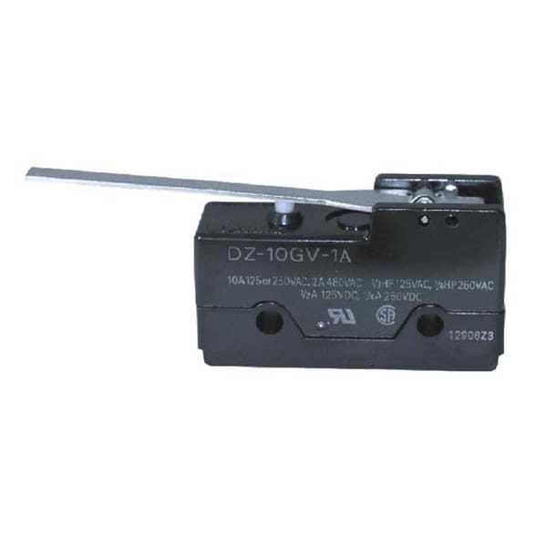 Snap Action Switch, Hinge, Lever, AC Contact Rating - Snap Action Switch 10 A @ 240 V, DC Contact Rating - Snap Action Switch 10 A @ 30 V, Contact Form- Switches DPDT, Lever Actuator Length - Snap Action Switch 2.5 in, Height - Snap Action Switch 1.1 in, Width - Snap Action Switch 1.94 in, Depth - Snap Action Switch 0.69 in, Electrical Connection - Snap Action Switch Solder Lug, Mounting Dimension - Snap Action Switch 1.00 in Centers, Series DZ