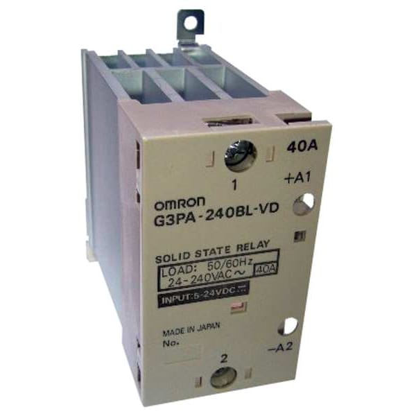 Solid State Relay, Electrical Connection Screw Clamp, Heat Sink Integral, Input Current 40 A, Input Voltage 4 to 30V DC, Maximum Output Current with Heat Sink 40 A, Maximum Output Current without Heat Sink Dependent on Mounting, Output Switching Mode Zero Crossing, Output Voltage Range 24 to 240V AC, Standards CSA Certified, UL Listed, VDE Approved, Switch Component Type Phototriac, Current Type DC, Electrical Phase Single, Finger Safe Yes, Mounting Style DIN Rail & Screw Mounting