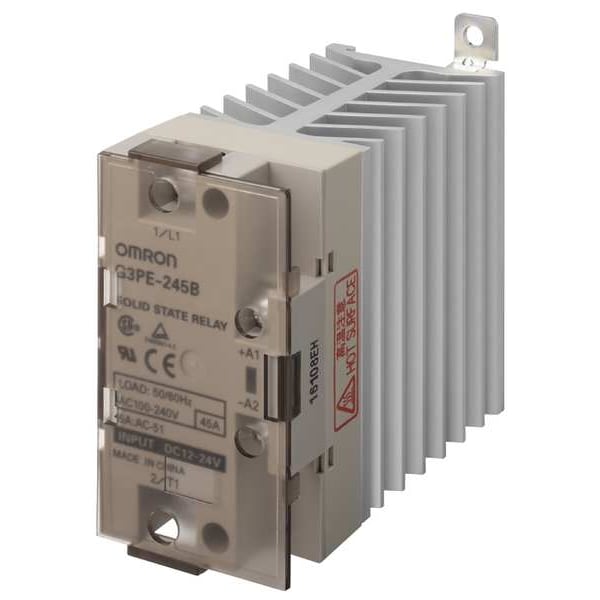 Solid State Relay, Electrical Connection Screw Clamp, Heat Sink Integral, Input Current 40 to 150 A, Input Voltage 4 to 30V DC, Maximum Output Current with Heat Sink 45 A, Maximum Output Current without Heat Sink 45 A, Output Switching Mode Zero Crossing, Output Voltage Range 120 to 240V AC, Standards CSA Certified, EN Standards, RoHS Compliant, TUV Certified, UL Listed, Switch Component Type Phototriac, Current Type DC, Electrical Phase Single, Finger Safe Yes