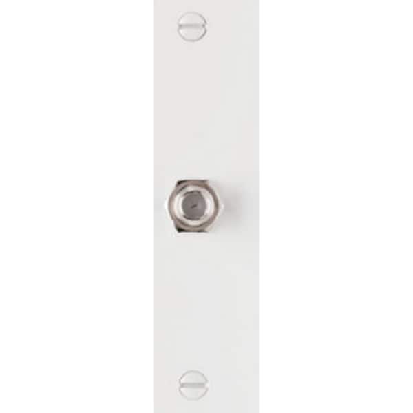 Single gang, F type coax connector and wallplate in white is made of nickel-plated steel. It has a mar-resistant wallplate that fits any standard size single-gang electrical box.