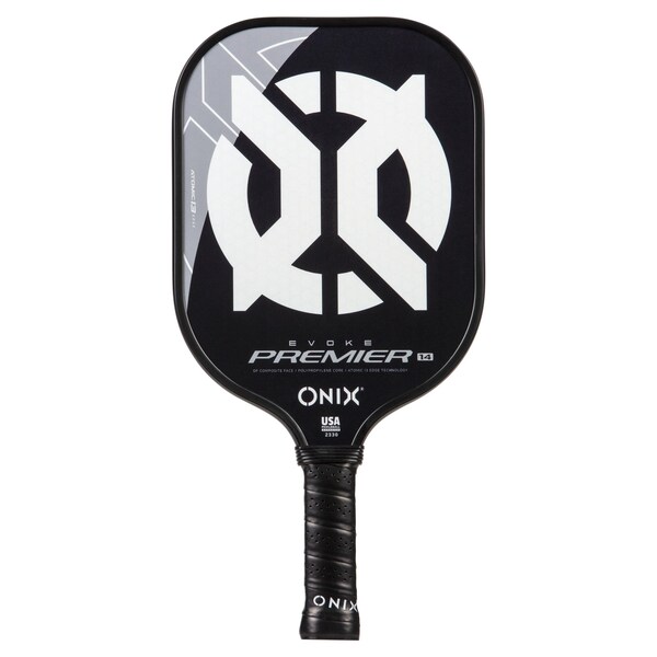 Co-developed by Pickleball National Champions Matt Wright and Lucy Kovalova, the Evoke Premier paddle brings power and precision to your game like never before. The Evoke Premier uses the new Atomic13 Edge Technology, an edge guard specifically designed to disperse shock while increasing power and swing-speed to the paddle. The DF Composite face provides a consistent minimal coating on the surface to soften the ball without losing any spin or pop off the composite face. The precision cut polypropylene core delivers incredible touch. It is a standard weight paddle 7.8-8.2 oz.. The Impact Paddle shape 16'' x 8'' is perfect for slightly increasing your reach and maximizing your baseline power, making the Evoke Premier the most powerful and solid paddle in the ONIX Pickleball lineup.