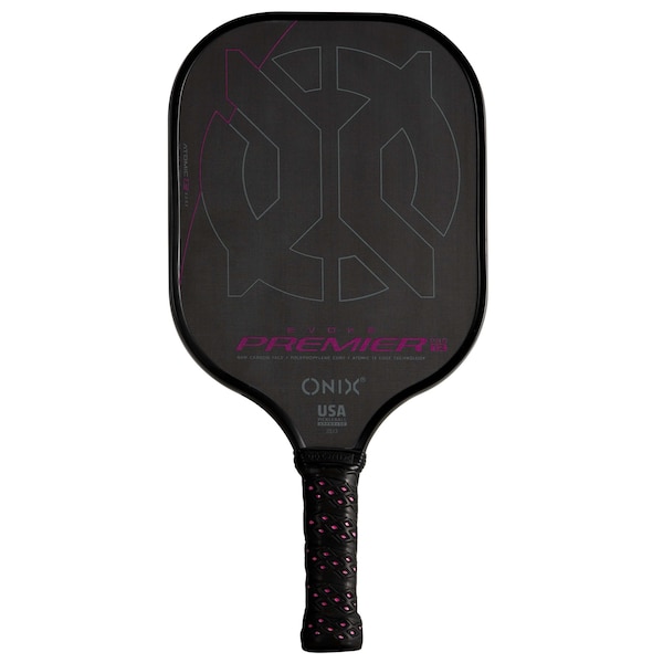 Introducing the all-new Evoke Premier Raw Carbon Paddle from ONIX Pickleball, this raw carbon fiber surface texture increases traction on the pickleball for maximum spin and control without sacrificing pop and power. The polypropylene core provides a lightweight and durable paddle with excellent all-around maneuverability. This lightweight pickleball paddle is also constructed with a non-slip, comfort grip that makes it easy to control on the court. These paddles are USA Pickleball USAPA approved for tournament play. A full edge guard provides added protection during aggressive play. Raise the level of your game. Play Your Best with ONIX!