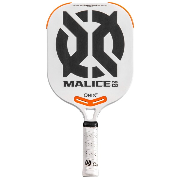 The control and touch you already know and love is now available in white! The newest pickleball paddle to the ONIX lineup, the White Malice Open Throat DB Composite Pickleball Paddle. Featuring the patented ThermoFused Technology, this exclusive technology molds the pickleball paddle to exact specifications. The carbon fiber Power Frame wraps the entire paddle providing extra strength for the most rigorous pickleball play. The double bridge contains a rubber insert that helps reduce vibration and increases power. The tennis handle is filled with high-density foam to enhance comfort while reducing vibration. The White Malice double bridge features a polypropylene honeycomb core insert for better touch, power, and pop. Experience the unmatched performance power in a medium-weight paddle weighing 7.8-8.2 oz. with a composite face. The Malice DB pickleball paddle now in white is great for players that are looking for less vibration and more control with an open-throat paddle. The Malice 14mm is best for better control and the 16mm style is for maximum control. Play your best with ONIX Pickleball.