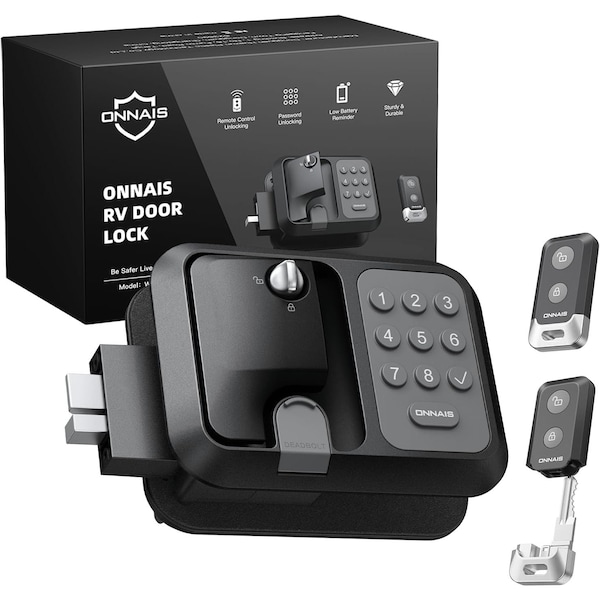 Upgrade your RV security with the RL-W007 Keyless Entry Door Lock, engineered from premium all-metal construction to resist prying, kicking, and forced entry. Designed for life on the road, its waterproof build ensures reliable performance in any weather. Unlock freedom with the included FOB, which works from up to 100 feet away, or use the hidden mechanical key for backup peace of mind. For quick trips or shared access, the backlit keypad offers convenient, peek-proof entry with customizable codes up to 32 digits, keeping your password safe from wandering eyes. Installation is simple thanks to the all-in-one kit-complete with screws, tools, and a clear manual-so you can secure your RV without extra hardware store runs. With a versatile fit for standard RV openings and right-side hinges, this lock delivers long-lasting protection, effortless convenience, and total control wherever your travels take you.