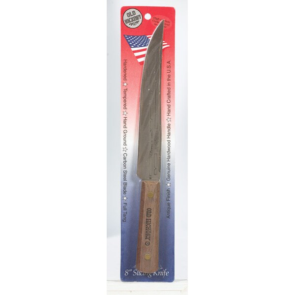 The Old Hickory knife feature a hardwood handle secured with brass compression rivets to 1095 carbon steel blades that are both very sharp and capable of retaining an edge better than most stainless knives. Proudly manufactured with artisan processes for over 90 years Old Hickory has stood the test of time and is proven to be the best carbon steel kitchen cutlery sold today.