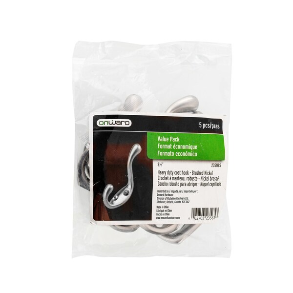 3 38inch HeavyDuty Utility Metal Coat Hook, Brushed Nickel Finish, 5PK