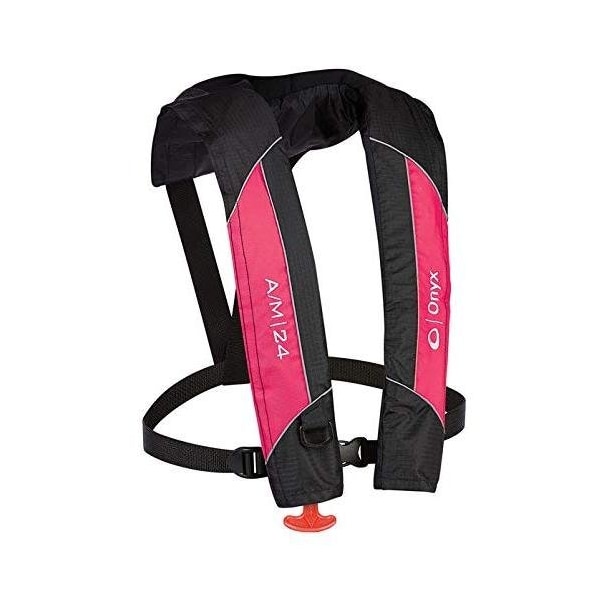 AM24 All Clear Inflatable Life Jacket, MFG 13220010000420, Adult, Red, has a cylinder seal indicator window that shows red or green for an ataglance look to show that the inflatable life jacket is properly armed and ready to use Onyx 13220010000420 043311969710