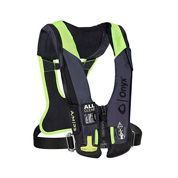 Convertible from automaticmanual to manual only inflation Front zipper closure for a low profile secure fit, Sailing harness with heavyduty soft harness loops and layflat design Air mesh in contact areas, Dual adjustments with webbing locks to manage excess webbing, Secure Pull clips to life jacket allows for quick release when pulled for inflation Quickburst zipper opens upon inflation easy to repack, Inflation chamber has SOLAS grade, reflective material and light attachment Vback for comfort and faster donning Features a 15 body belt, Protective cover uses heavyduty 400 denier nylon oxford and 500 denier Cordura, Hanging loop for drying, Extended sizing fits up to a 65 chest Onyx 13430070100421 043311973403