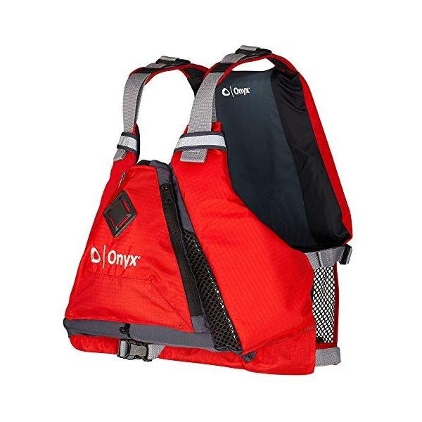 The Onyx MoveVent Torsion paddle vest features mesh ventilation panels in the front and lower back, along with a unique vented foam back for added airflow The mesh panel in back accommodates most canoe and kayak seats for paddling comfort This vest has adjustable shoulder and side adjustments and a sculpted flexible foam design conforms to your body and stays in place when paddling The Torsion vest has SOLAS grade reflective material for visibility, and a large expandable zipper closure pocket with drain holes Marine whistle included Available in XSmallSmall 2836 chest MediumLarge 3644 chest and XLarge2XLarge 4456 chest sizes This personal flotation device PFD is U S Coast Guard and Transport Canada approved Onyx 12240010006021 043311973441