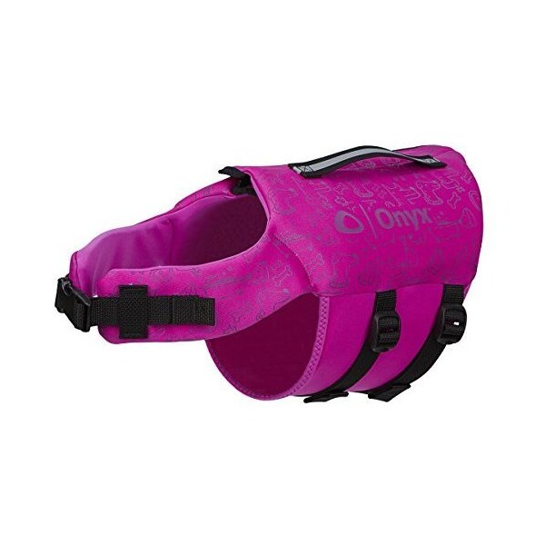 The ONYX pet life jacket will keep your pet safely swimming so you won't have to worry Soft neoprene is comfortable and warm for your pet and allows freedom of movement The zipper on the top of the vest allows for easy onoff functionality while the adjustable body belts adjustable straps offer a better fit Features include a sturdy handler's strap for easy recovery and reflective surfaces for increased nighttime visibility XSmall size fits pets weighing 815 lbs 1013 neck 1824 chest and 1420 waist Onyx 15720060001019 043311959315