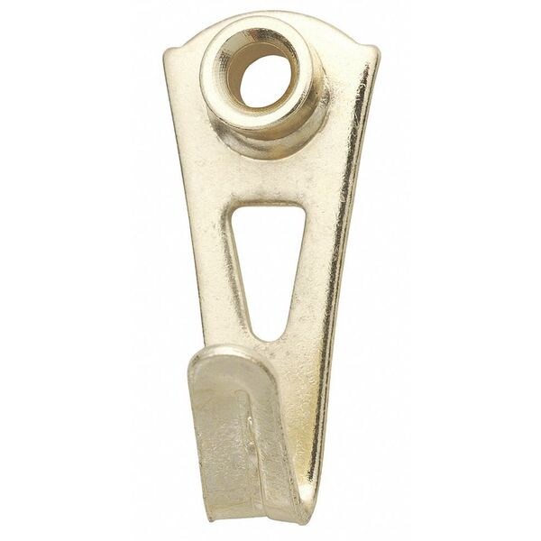 Picture Hanger, Fastening Method Screw Mount, Points per Hook 1, Number of Hooks 1, Basic Hook Material Steel, Hook Finish Brass, Working Load Limit 30 lb, Hook Height 1 1/4 in, Hook Base Width 1/2 in, Projection 15/32 in, Brass, Package Quantity 3
