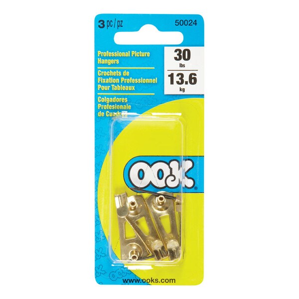 The Ook professional picture hanger set can be used to hang objects of up to 30 lbs. On sheet rock and plaster walls. The set includes 3 picture hangers and 3 nails for your convenience.