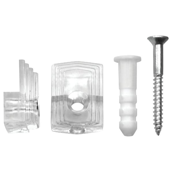 Mirror Clip Set, 20 lb, Plastic, Clear, Wall Mounting, 10PK
