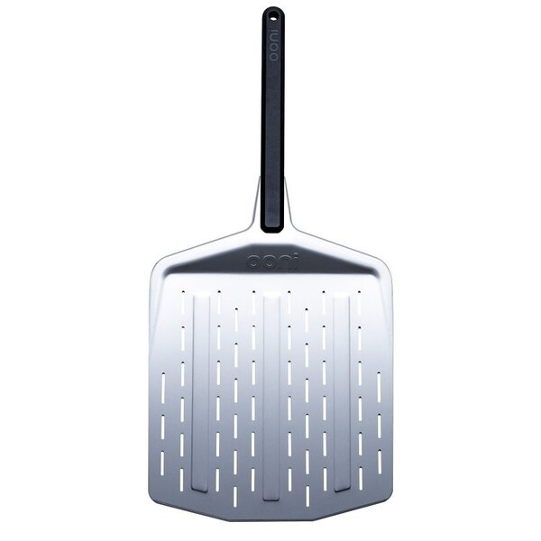 Designed for cooking pizzas up to 12 in wide, our perforated aluminum Ooni 12 in perforated pizza peel is a highquality, lightweight peel for sliding, turning and retrieving pizzas from your oven with ease Use the tapered peel edge to slide straight under pizza bases, while the perforations mean a ideally cooked pizza every time as steam is able to quickly evaporate and excess flour falls away from the pizza base A supersleek, hard anodized coating provides increased corrosion resistance and a hypersmooth surface to guarantee a seamless experience when launching and retrieving pizzas