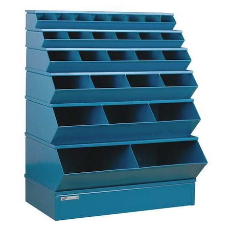 Sectional Stacking Bin, 37 in W x 24 in D x 76 in H, 59 Compartments, Blue, High Gloss Steel
