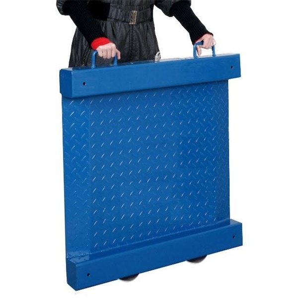 Optima Scale's OP-917-PT-REC portable drum scale features a spacious 24.5 x 30 inch platform with two-way, easy-access integral ramps, built-in carry handles and wheels, battery powered indicator, plus wheels and a handle for easy mobility and use in multiple locations. The scale fits through standard doors and can go wherever you need it for weighing drums, barrels, industrial containers, and small crates. The ultra-low, 2.2-inch-high profile allows easy loading of heavy items. It is available in a heavy-duty checkered mild steel deck with 2,000 lb x 0.5 lb capacity.