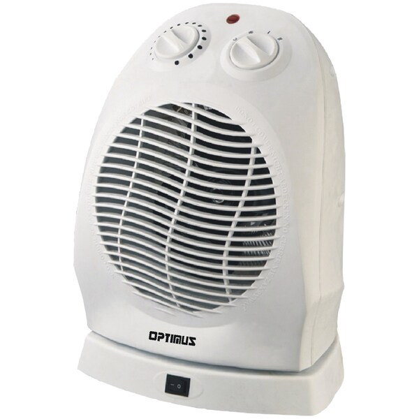 A great money-saving alternative to heating the entire home, this energy-efficient portable fan heater delivers comfortable warmth where it's needed most. The unit features two heat settings at 750 and 1500 watts, plus a thermostat that helps regulate the heat automatically. To help better distribute the heat throughout the room, its motorized oscillating base rotates a full 90 degrees.