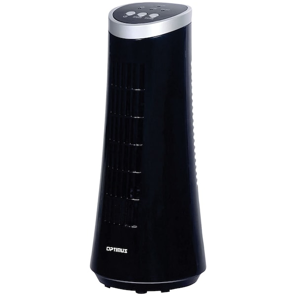 Cool off at your desk with the 12-in. Desktop Ultraslim Oscillating Tower Fan from Optimus, in black. This desktop fan features 75deg oscillation to cool your area. The convenient handle and portable design lets you move the desktop fan around the home or office, where you need the breeze the best.