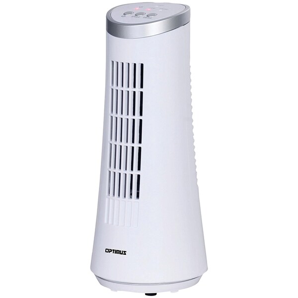 Cool off at your desk with the 12-in. Desktop Ultraslim Oscillating Tower Fan from Optimus, in white. This desktop fan features 75deg oscillation to cool your area. The convenient handle and portable design lets you move the desktop fan around the home or office, where you need the breeze the best.